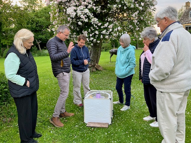 Activities to date include hedgerow surveys; common area planting for pollinators; assisting toad and frog migration registered with Froglife; the annual RSPB garden bird watch with a village record maintained; exploring the Cotswold Distillery’s wetland and future plans; testing river water quality as part of a central England monitoring project; guided learning about Swifts and village flora; moth trapping and identification from local experts.